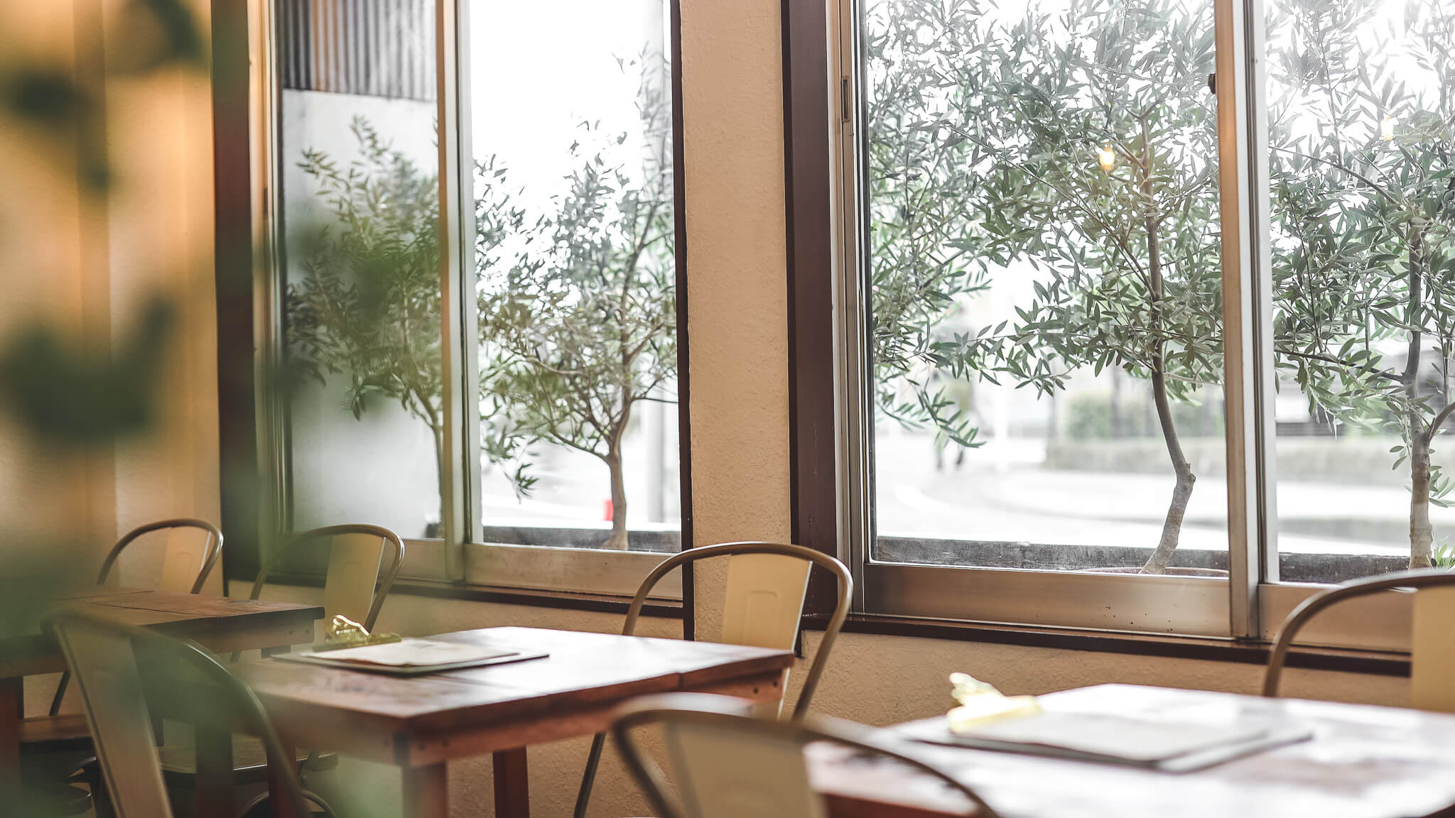 たっぷりの陽光が差し込む店内は、明るく心地よい空間です。
